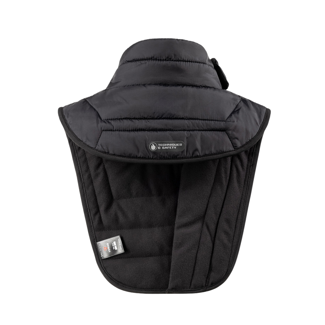 Extended design fully covers the neck area and can be adjusted to cover part of the face for added protection.