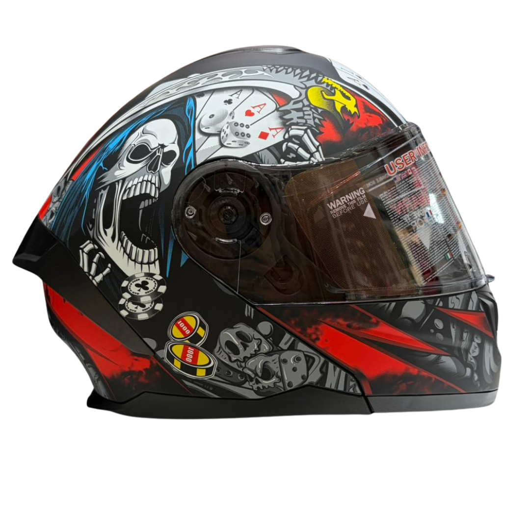 Internal retractable tinted visor reduces glare and improves daytime visibility.