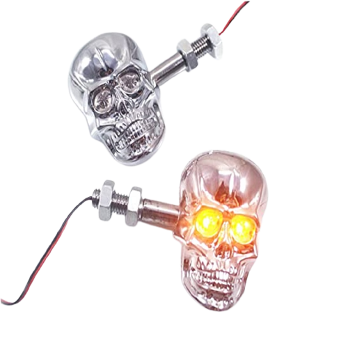 Features a distinctive skull head shape, adding a custom, edgy look to your motorcycle.